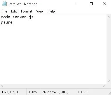And a simple batch script to simplify the startup process (I renamed the file to server.js in this example):